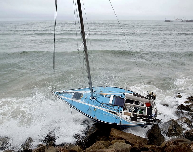 Volunteer crew member, Jack Shannon, then entered the water, swam ashore to some steps near Penzance Railway Station, and made his way on foot to the yacht. On arrival he could see that the man was injured – the surf was now breaking on to the hull of the yacht so there was an immediate need to get him off the vessel. Jack assisted him down off the yacht, across several large boulders, to the safety of dry land. He was then handed over to members of the Penzance Coastguard Rescue Team who did a full medical assessment. The man was placed on a stretcher and carried to an awaiting ambulance. He was conveyed to West Cornwall Hospital, Penzance for treatment.