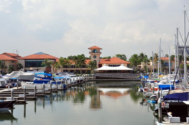 The marina is located on the west side of the island, adjacent to the Second Link Bridge connecting Singapore and Malaysia. It is close to the end of the Ayer Rajah Expressway (AYE) and there is an MRT station 100 meters away.