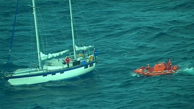 “Watchstanders at the Fifth Coast Guard District command center received the initial call from the Rescue Coordination Center United Kingdom on Wednesday at 7:43 a.m., who reported that a 39-foot sailboat had become disabled due to a non-functional steering box with two persons aboard,” the U.S. Coast Guard said.