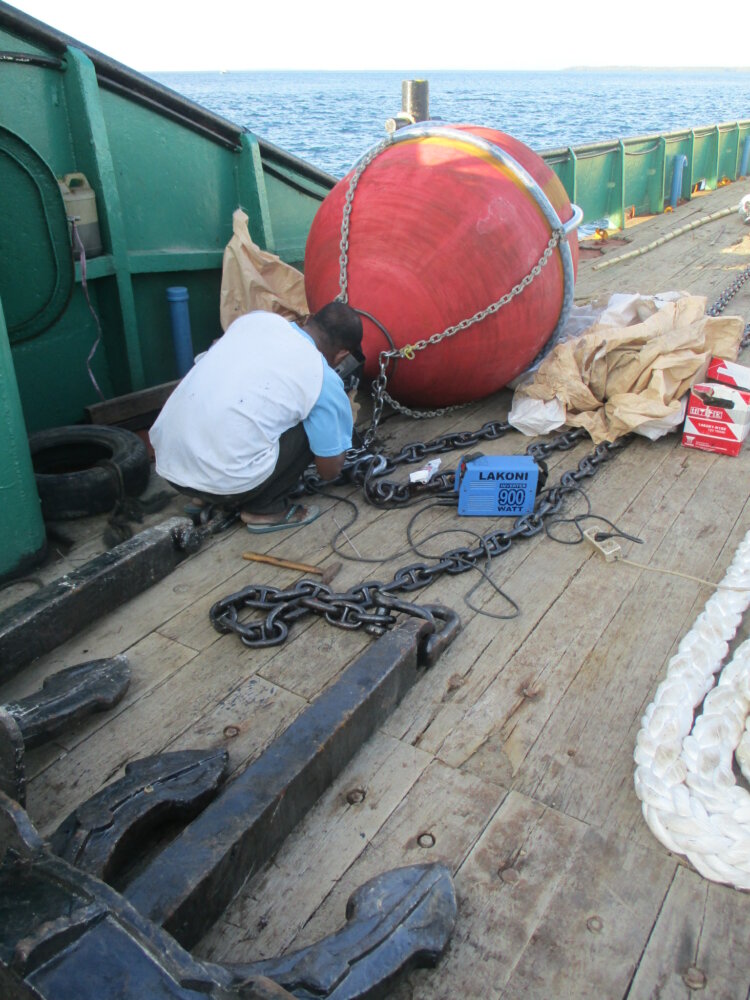 - The first two moorings have been installed using 360 kg Stockless anchors set 20m apart on 22mm Studlink chain.