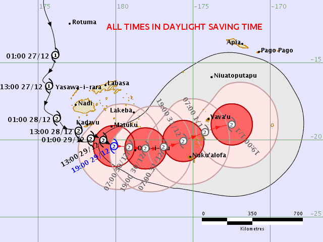 - Tropical Cyclone Sarai is now heading for Tonga. (c) Fiji Met Service