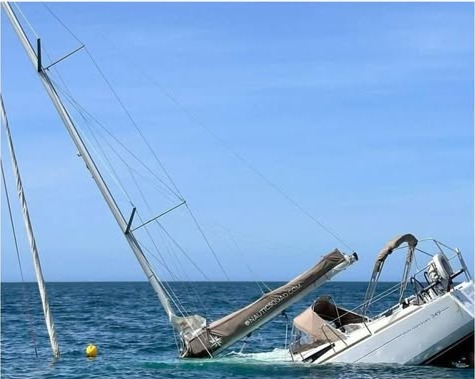 The vessel that came to assist tried to tow the stricken yacht, but the boat eventually sank. All five passengers were rescued by nearby boats, and no injuries were reported.