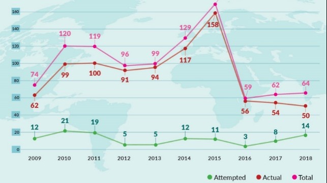 Lower-level incidents on board ships at ports and anchorages in Chittagong and off Samarinda, East Kalimantan are a concern this year, as well as onboard ships underway in the Straits of Malacca and Singapore (SOMS). Incidents in the Philippines are down, and hijackings of product tankers for the purpose of fuel theft has ceased – a remarkable turnaround representing several years of law enforcement efforts.