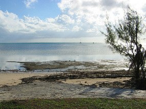 Here you can anchor in 6-12 feet of water on a sandy bottom near the private moorings directly off the town, with the conspicuous ruins of the Deveaux Plantation and a concrete boat ramp nearby. If there is a heavy blow from the south you might get a slight surge over the reef at high tide, but it is perfectly safe.