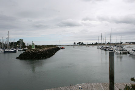 The large marina here offers good shelter and is a good place to get work done and a secure place to leave the boat. The marina cannot be entered at low tide, but there are waiting for buoys in the river.