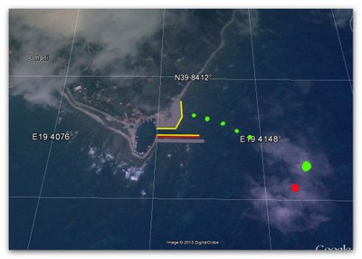The outer channel leading into the port is well marked and has 3.5 to 4.5 meters (11.5 - 14.7 ft) depth. There are two large outer markers, a red and green, both lit, to the SE of the entrance.