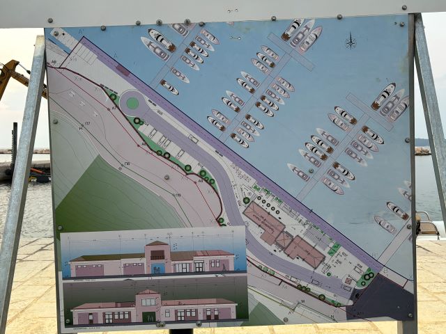 At the eastern side of the bay there are several mooring rings, but the quayside was not yet operational July 2024.