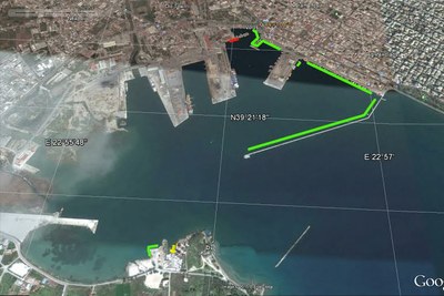 The southern breakwater is suitable for alongside berthing. The laid lines previously along the seawall are all gone, leaving only rusty mooring rings on the quay. The sea floor is covered with lines and chains, so beware of dropping an anchor. It is one of the few places to berth in Volos and is suitable in most weather. With a strong north wind in the harbour, your boat will be pressed against the quay. As there are rusty mooring rings along the wall, fender heavily under these conditions, to avoid hull damage. The prevailing winds in the harbour are from the south, so this is not usually an issue. The area is fairly safe, and while there are many people walking or hanging out on the quay, there are generally no problems. There are no services (water or power) on the seawall quay.