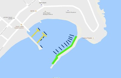 While depth is no longer a problem here, the bottom is still a mixture of mud and weed so holding can be poor in places. The port offers good shelter from the prevailing wind, but watch out for the local Katabatic winds that switch on in the evening for a few hours from the N/NW.