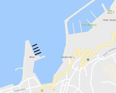 There is a marina development to the NE of the town quay that has remained un-finished for several years, with rather an abandoned air about it. It also tends to be full of local boats so finding space here may be difficult. Fortunately, it was announced in October 2024 that a concession contract for the marina development has been agreed with the Hellenic Republic Asset Development Fund (HRADF).