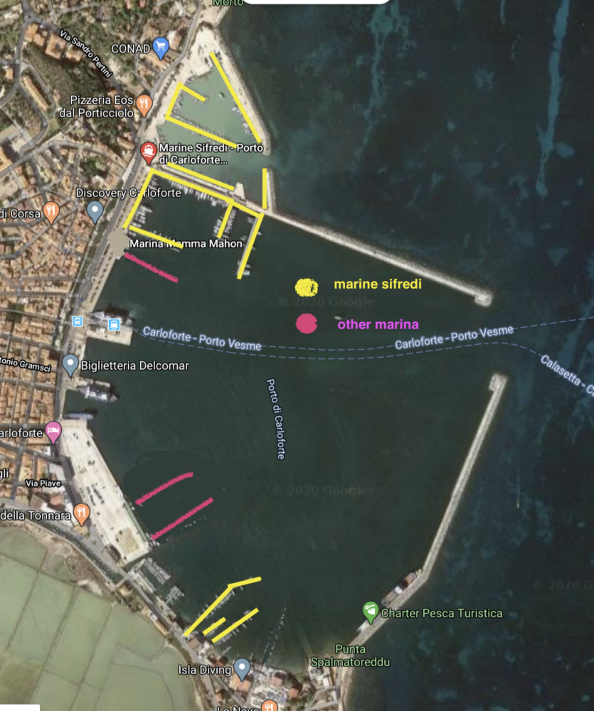 There are three marinas here, managed by two companies: Marina Sifredi and Marinatour.