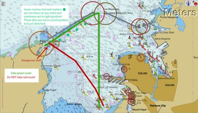 There is a very small (unofficial) anchorage area off the Club Nautico Colon, on the east side of Colon at Manzanillo Bay, although it is not recommended. This anchorage has poor holding and is exposed to frequent wakes. The Club's landing area is no longer available to yacht crews at anchor and security may deny you access. It is also not permitted leave your dinghy at the close-by Cruise Ship Terminal.