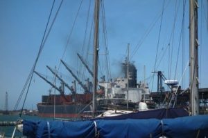 It should be noted that if Iron Ore (dry dust) is being loaded at the Depot and there is a strong easterly wind, black dust can be a problem in the marina and surrounding area and cover decks and deck equipment. Speak with the marina on arrival to check the current situation. Berths on the eastern side of the marina are more sheltered from this problem, and from the swell which can also be quite prevalent here.