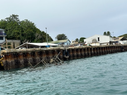 The Customs dock at Neiafu is tricky for docking, yet, coming alongside is necessary for international clearance. It is a lee shore and there are two sunken wrecks to keep clear of. Make sure you avoid the end of the dock nearest to the channel as there is a fishing boat that has sunk right next to the quay and is only visible at low tide. There is also another wreck at the other end of the dock. Only one is marked with a red buoy. It is recommended to inspect the dock first from the shore, before coming alongside.