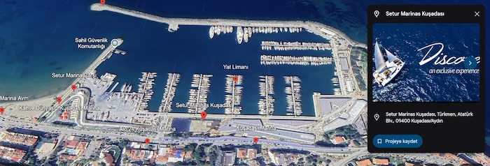 There are six laid moorings available close to the marina in the small sheltered bay between Yilanci Burnu and the castle. Be aware that the holding on these moorings is reported to be unreliable (see the Comments section).