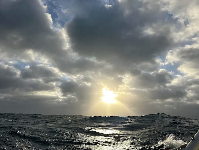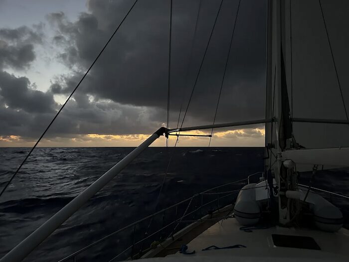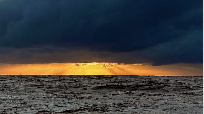 Sometimes it is very welcome, as on the picture below. We were on day seven of ten from Reunion to Richards Bay in South Africa. Maybe the toughest passage of them all, with a very varied weather pattern. We were south of Madagascar and about to cross the Agulhas current, running north to south. You have to do that when the wind blows in the same direction, otherwise you can be drowned in a monster wave.