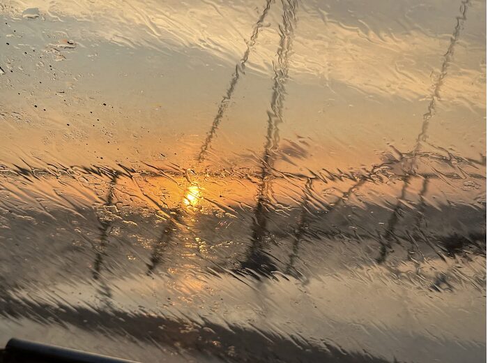 I remember vividly when we were swaying in a storm on the Great Barrier Island, off Auckland, New Zealand. It rained and blew for days on end, but for a moment the light broke through, even then. As a reminder that something else also exists.