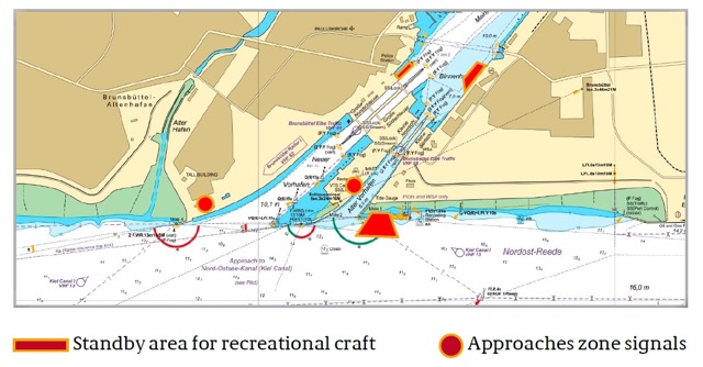 VHF channel 12 (call Kiel Canal IV) Kiel-Holtenau lock area