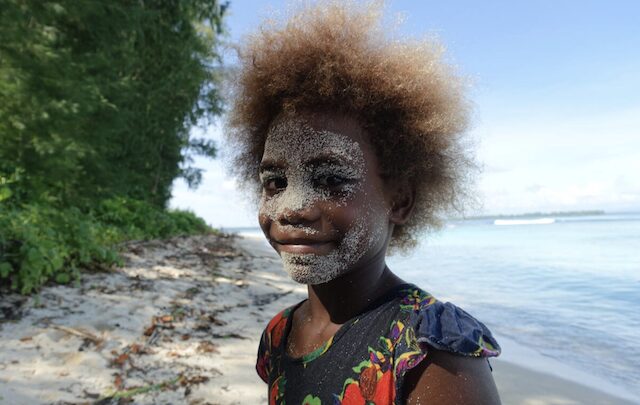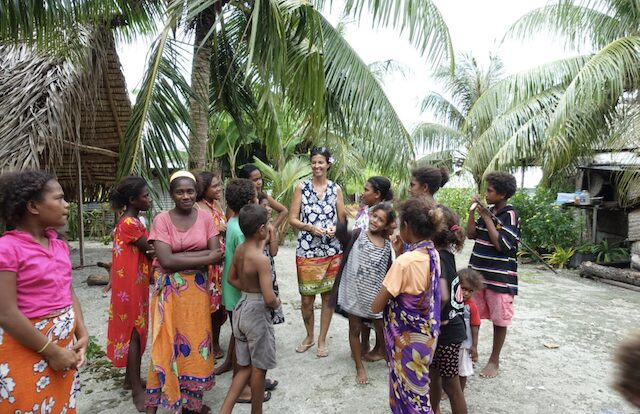 Carteret is a Melanesian atoll with hardly any landmass–just five tiny motu with one village each. Distances are large, but the people don’t have money for petrol, so all traffic between the islands is done with sailing canoes! Like in Takuu the supply ship calls rarely and people are welcoming and happy to trade, but not much is grown, so bartering is limited to bananas, coconuts and papaya.