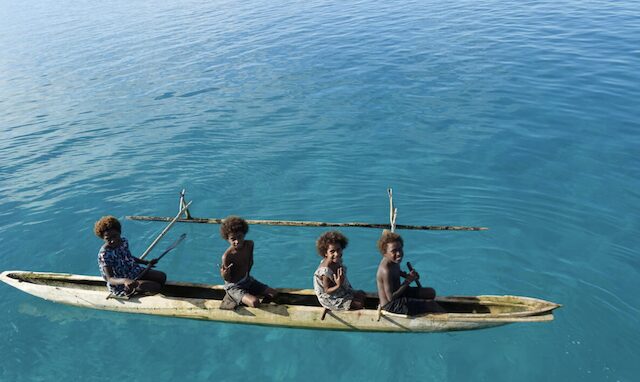 We anchored in the well-protected bay of Palie village (murky water). There’s a supermarket ashore and three (!) schools, so we had many kids visiting the boat in canoes.