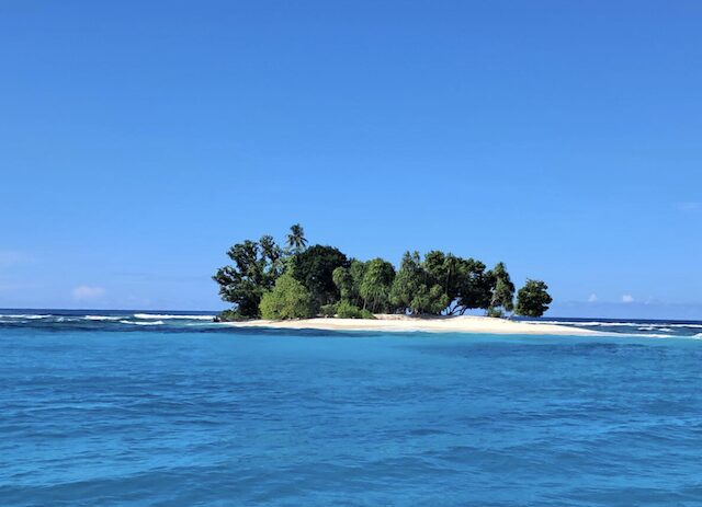 Takuu is a Polynesian outlier and they keep up Polynesian traditions and language. The whole population lives on one motu. There’s one garden motu (they only grow coconuts, taro, bananas and papaya–so don’t expect much trading for vegetables) and all the other islands are full of birds–there’s even one dedicated bird motu with nesting boobies and terns. Snorkeling inside the lagoon was great, most of the eastern side is a no-fishing zone, so leave your speargun (if you have one) aboard. Generally the sandy areas on the lagoon side of the coral shelf are rather narrow, but we found many good anchoring spots.